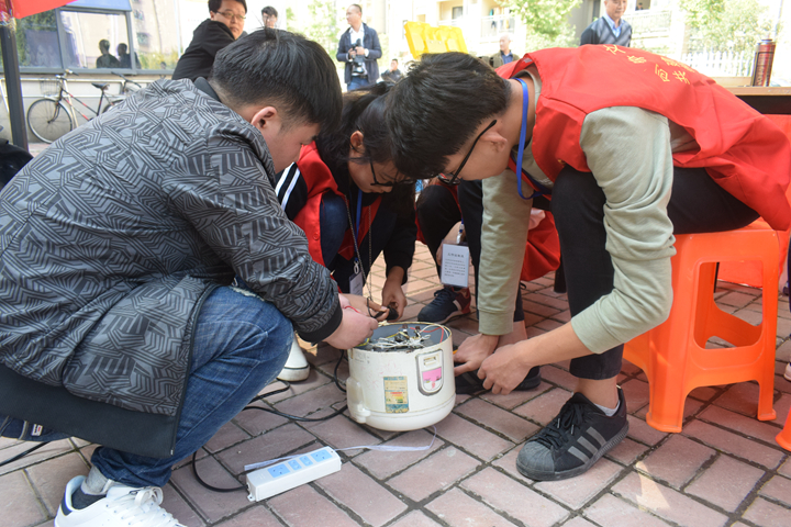 活动现场,闻讯赶来的居民们陆陆续续从家中拿来不能正常工作的电风扇、电热水壶、遥控器、电饭煲、收音机等小家电让志愿者们“会诊”, 各种小家电摆满了服务台。志愿者们认真查找故障原因,仔细分析每一件小家电存在的问题,积极处理检查出的问题。卸螺丝、检测、换零件、安装,电饭煲由原来的不通电到正常的工作。同时,志愿者们还耐心地向大家讲解家电使用和保养方法,对无法修好的电器认真地说明损坏原因,提供维修建议。志愿者们将理论知识运用于实践当中,提高了动手能力,也方便了小区居民的生活。维修过程中虽然比较辛苦,但是大家还是一直保持着高涨的情绪,直到活动结束。