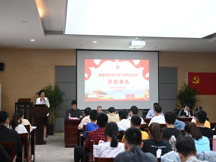 2021年下半年分党校培训班开班典礼在物理楼304会议室召开。院党委书记、分党校校长李娟,院党委副书记、分党校副校长黄友生,院关工委副主任、分党校指导老师陶绪德,培训班副班主任邹孝龙参加开班典礼。典礼由培训班班主任曹阳主持。