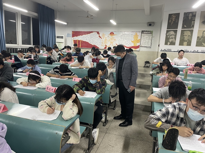 为检测入党积极分子学习成效,以考促学,5月15日晚7点,培训班156位学员于花津校区教学楼2010401、2010402教室参加入党积极分子结业考试。全场考试采取闭卷限时的形式,根据培训内容,结合时事政治等内容进行综合考核。学员们认真作答,态度端正,考场秩序井然。