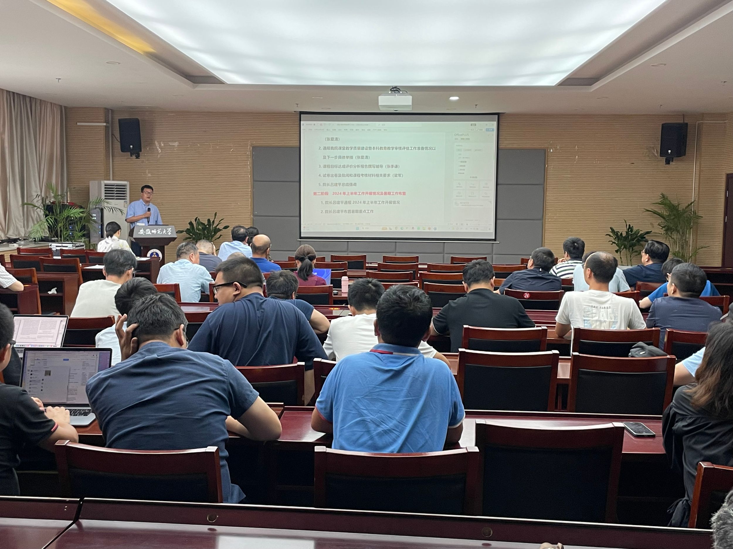 在物理楼304会议室召开全体教职工大会,重点推进教育教学质量建设暨本科教育教学审核评估工作,总结2024年上半年学院工作开展情况,布置假期重点工作。学院全体教职工参加会议。会议由院党委书记李娟主持。