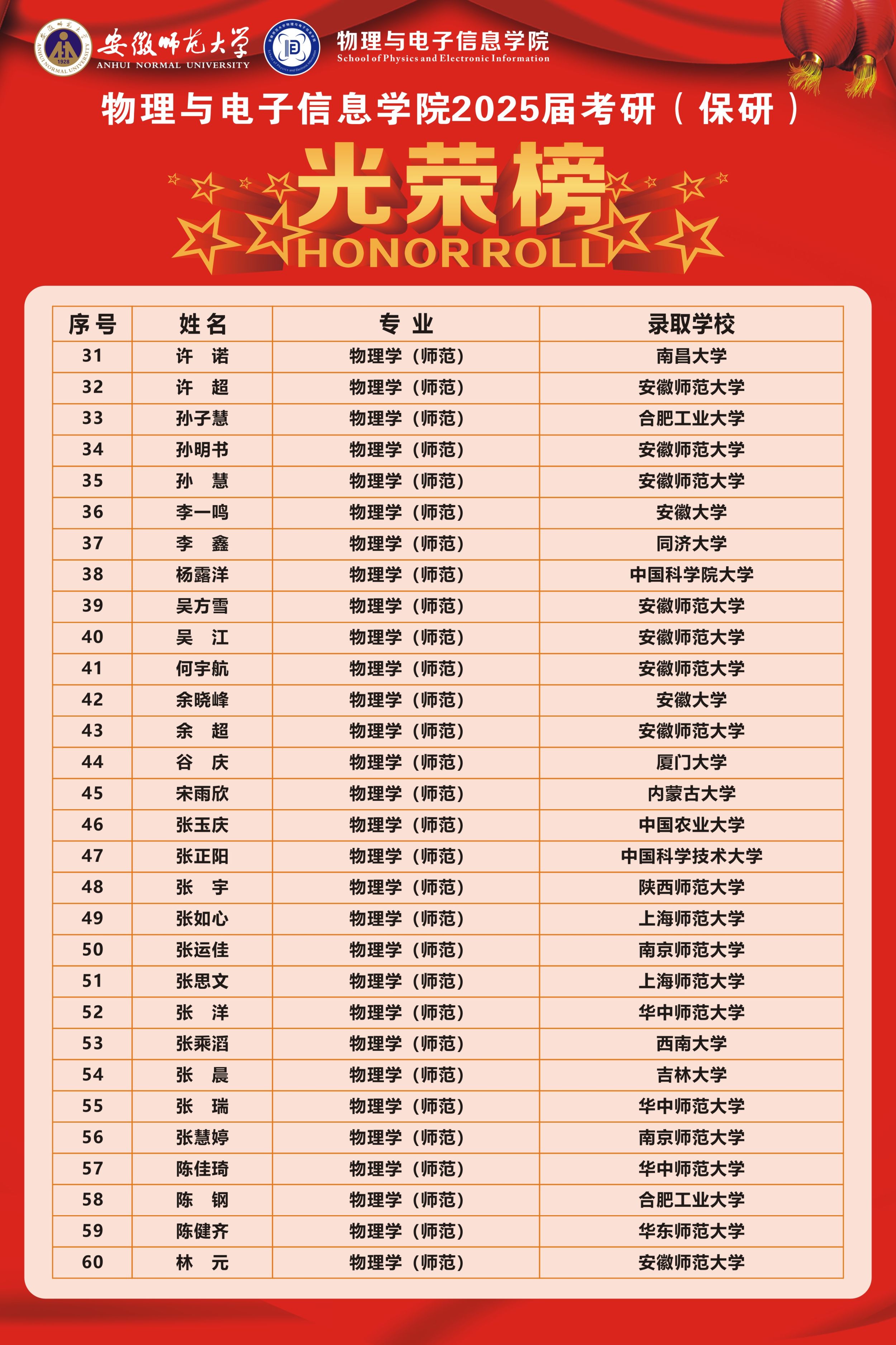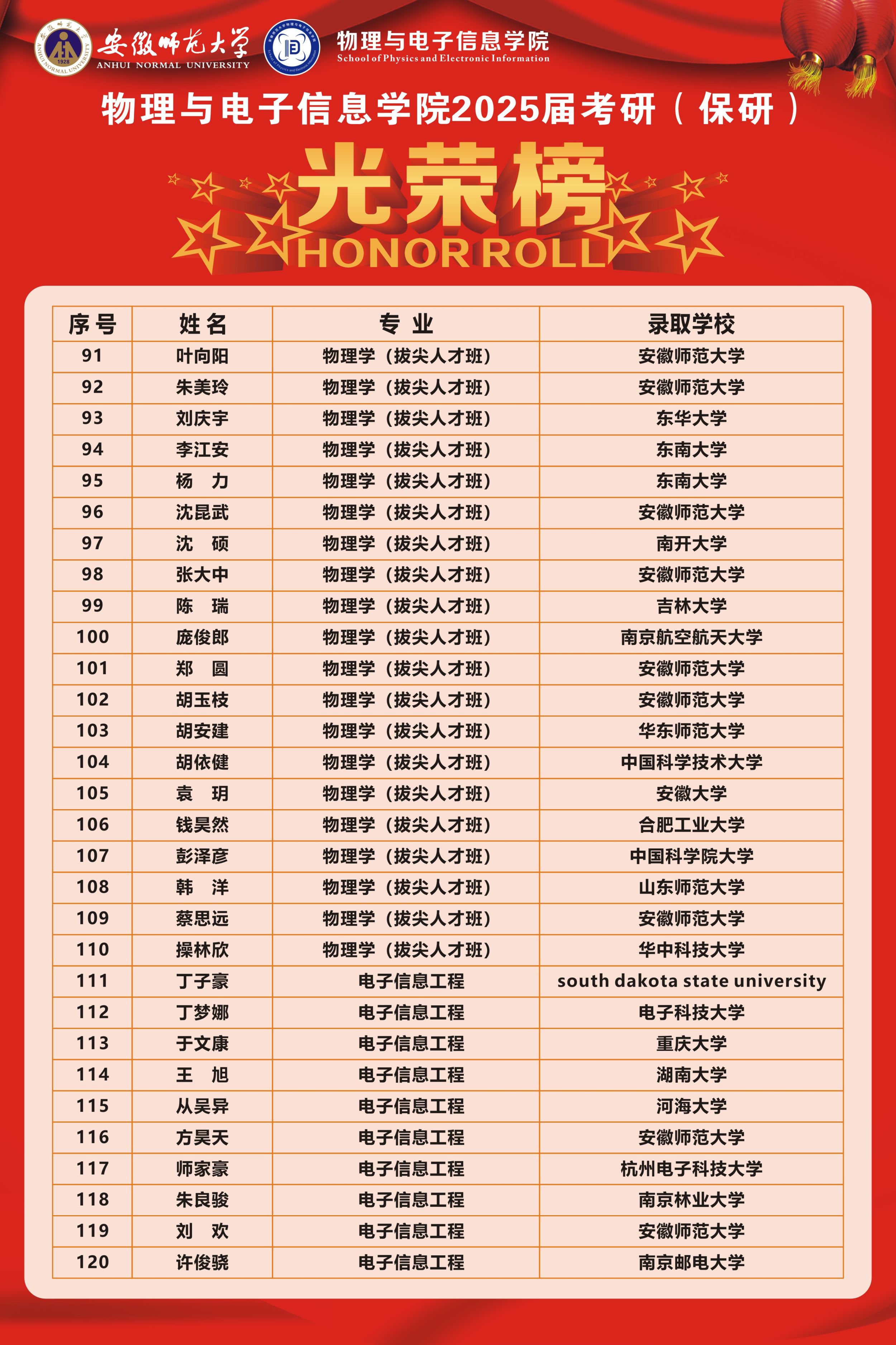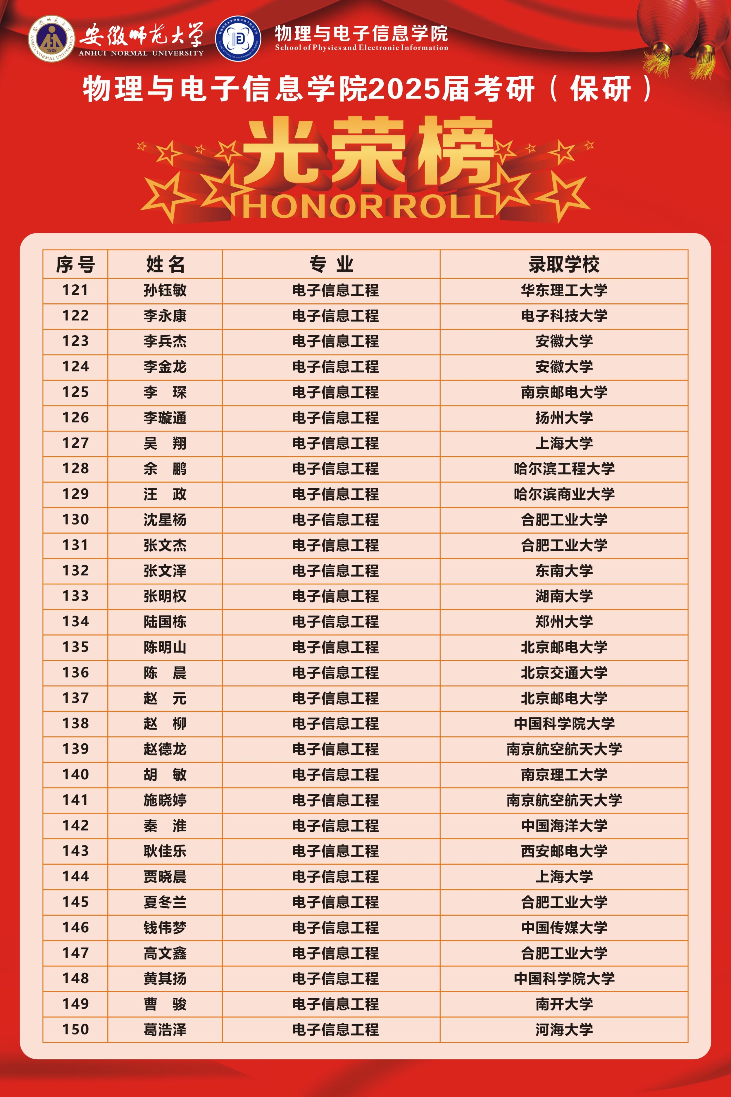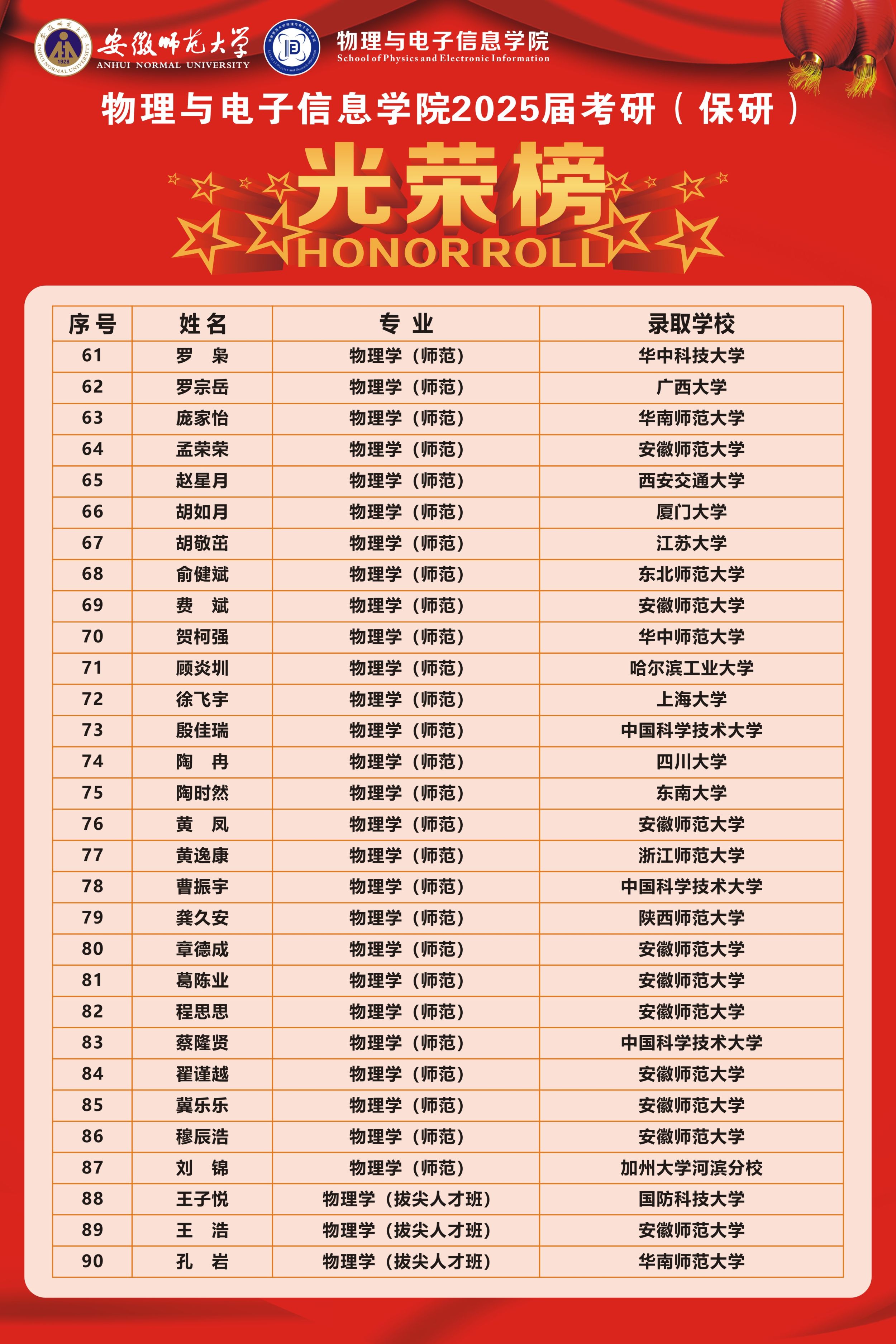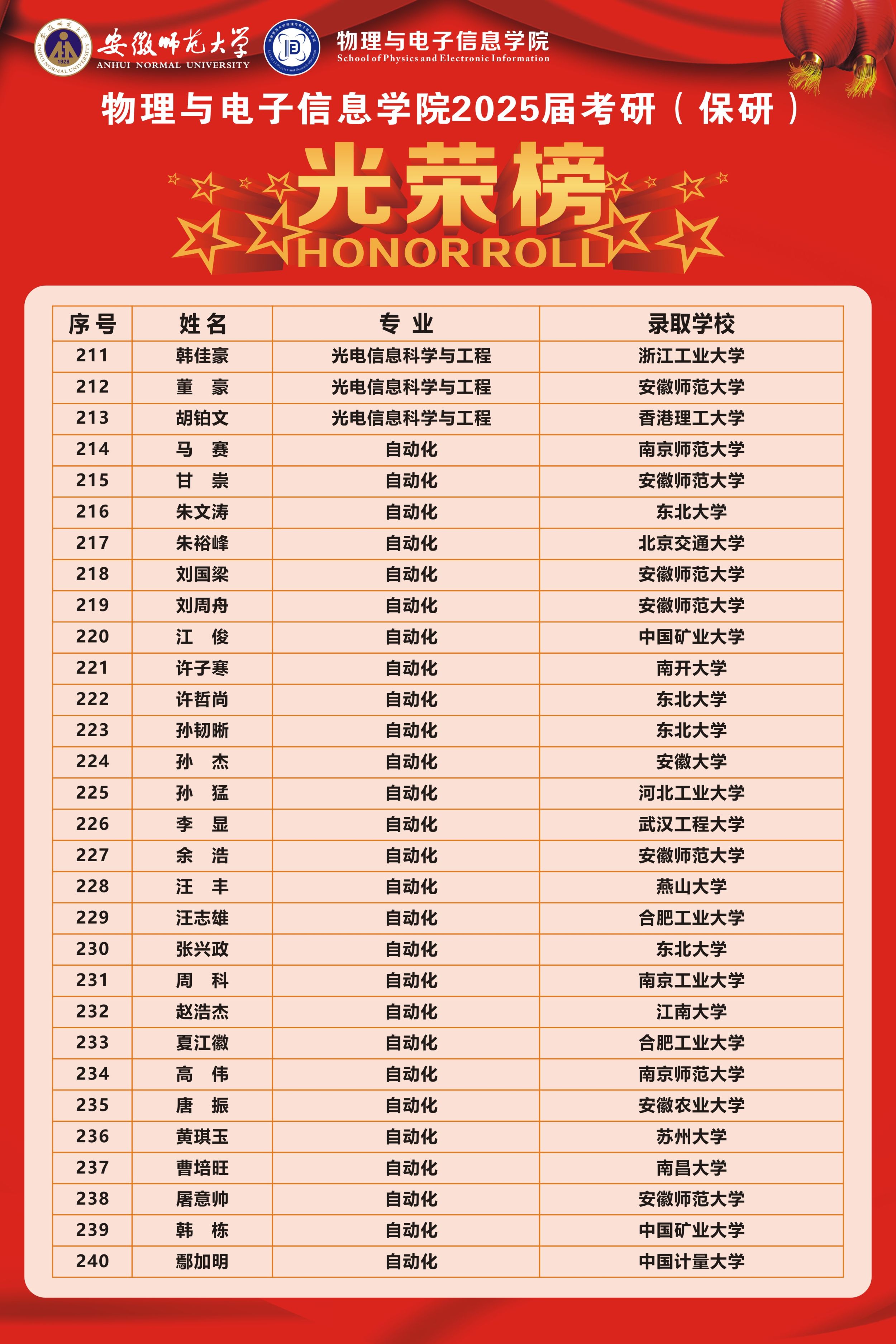 2025届本科毕业生共计566(含优师计划26人)人,继续深造人数达240人,占毕业生总数(不含优师计划)的44.44%,考研率稳步提升。其中237人被国内高校录取,3人被国(境)外知名学校录取。考取“双一流”高校、科研院所、出国(境)和本校人数占升学总人数的92.05%,包括浙江大学、南京大学、中国科学技术大学、华中科技大学、哈尔滨工业大学、四川大学、东南大学、北京师范大学、南开大学、厦门大学、中国农业大学、吉林大学、中南大学、湖南大学、华东师范大学、电子科技大学、重庆大学、东北大学等。