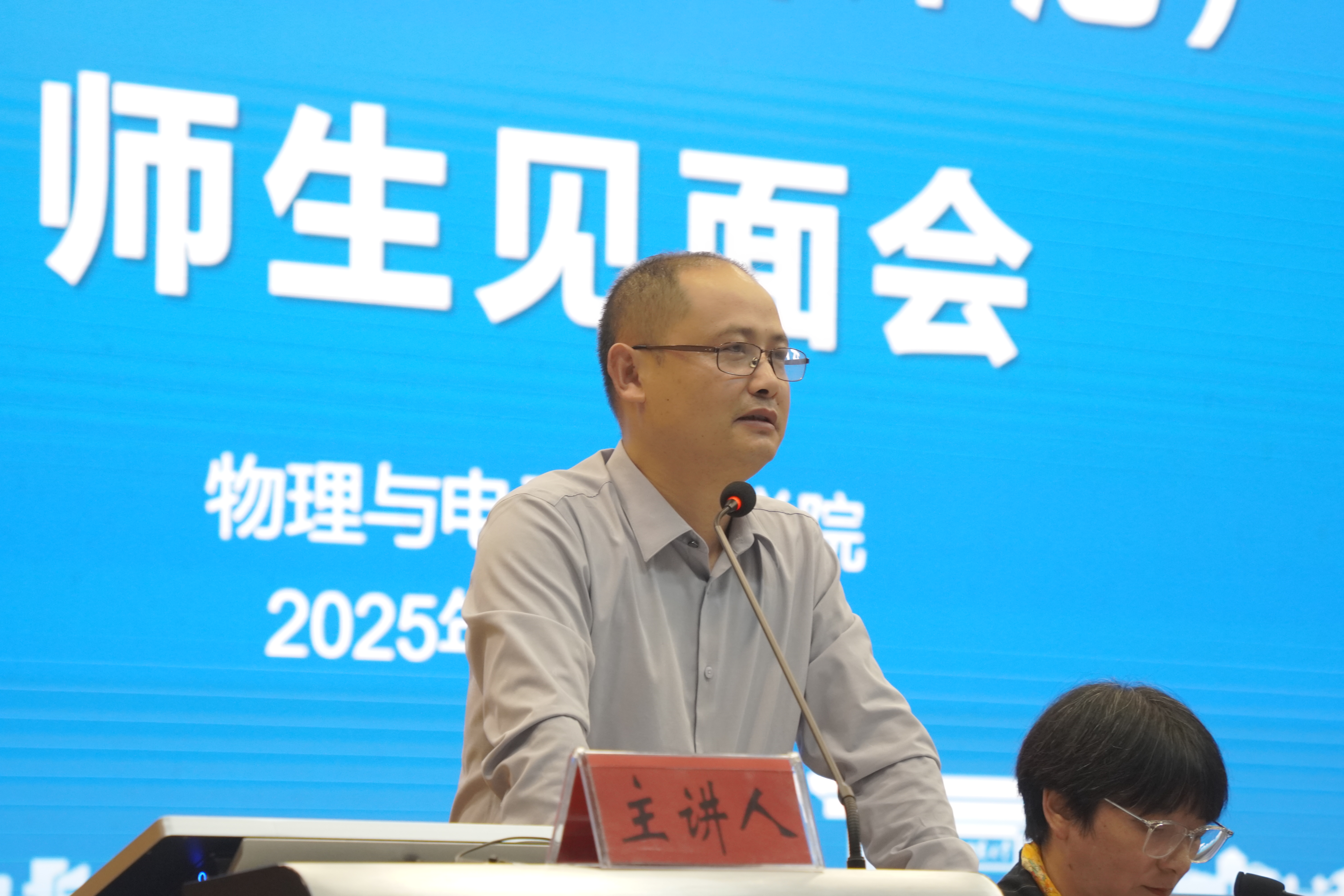 学院还邀请了2009级物理学专业校友、中国科学技术大学教授、博士导师唐国强,为2025级新生带来题为《以梦为马,不负韶华》的新生入学教育之学海导航辅导报告。报告中,唐教授从自己当年在学院的求学生活讲起,娓娓道来他从迷茫到坚定、从汲取知识到探索前沿的成长故事。他结合自身在科研道路上攻坚克难的经历,勉励在场的学弟学妹们要珍惜大学这片沃土,不仅要打下坚实的学业基础,更要勇敢地拥抱好奇心,培养批判性思维。他特别强调,“韶华”之所以珍贵,在于它赋予了每个人追逐梦想的无限可能,希望大家能将个人的兴趣与国家在关键科技领域的战略需求相结合,让奋斗的青春与时代同频共振。